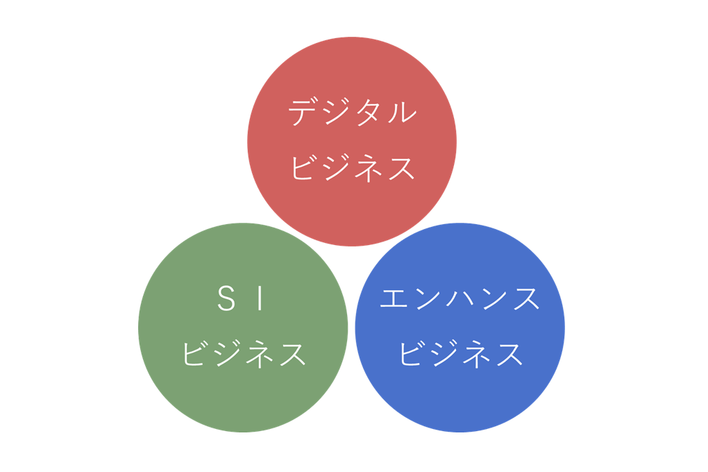 「デジタルビジネス」「SIビジネス」「エンハンスビジネス」の3つのサービスを提供しています。